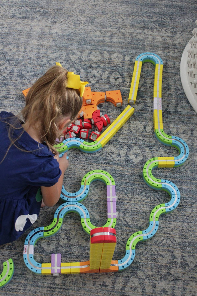 Ürünümüz yüksek çekim güçlü mıknatıslara sahiptir, raylar kurulduğunda stabil kalır. Tüm parçalar pürüzsüz kenarlı, BPA içermeyen ve sertifikalı materyallerden üretilmiştir.